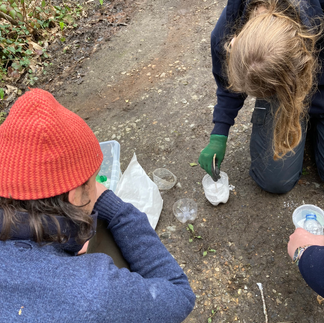 Today we discovered the first fully bloomed bluebell in the woods- very exciting! We started the morning by taking casts, using plaster of Paris, of a variety of animal tracks in the soft mud. We found Fallow Deer, squirrel, Collared Dove, rat and domestic cat prints. We then worked as a team with the wheelbarrows to move the final silver birch logs from where the tree was felled to the kiln area. We watered the seeds and planted some mint plants that had been donated to use- looking forward to some mint tea.