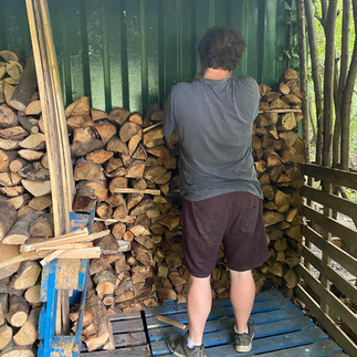 The silver birch logs that were moved last week were stacked carefully in the firewood shed to season. We added spacers in between to aid airflow.