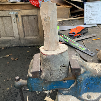 A new mallet was started today made from holly wood. Holly is particularly hard and so was a challenge to split and shape but with a lot of perseverance it is taking shape. It will be used at another woodland project, called Nurture in Nature, for women with cancer. They will enjoy using it to split logs for kindling for the campfire.
