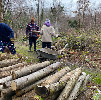 We were delighted to be joined by a new student today and they helped straight away with team activities. We gathered fire logs from the tree felled last week from the storm, as well as splitting some large long logs for charcoal making. Other activities today were unloading pallets from the trailer, splitting kindling, building and maintaining the fire, putting up bird boxes, sawing up pallet wood for kindling and sanding and oiling a chopping board for Laurel. Laurel is our admin and social media genius and we invited her to join us at Heartwood today as a thank you. She took all the fantastic photos today. Thank Laurel for all you do!