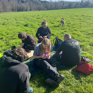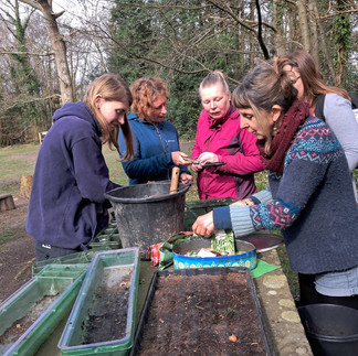 Helen and some students sowed their first seeds of the season and these were runner beans and peas. We enjoyed getting our hands in the soil again. In the afternoon we went for a walk with Barley and Twig to the ancient chestnut trees. As it was so warm and sunny we took a couple of flasks with us and a blanket and had a picnic hot drink - also the first of the season! Some of us really enjoyed climbing the fallen trees and we foraged for some stinging nettles and made nettle tea - delicious.