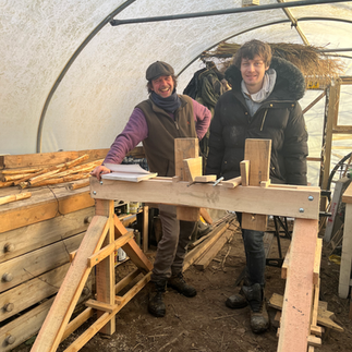 Mark chainsawed a dead tree and this gave us the chance to get together some more firewood. Further work was done on the pole lathe as well as splitting, sharpening the stakes and going for a slow meandering wander with the dogs through the driest parts of the wood.